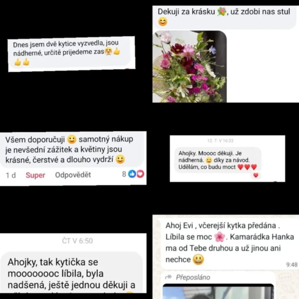 Každá kytice má v sobě kousek Litoměřicka, protože tady byla vypěstovaná od semínka. Každý týden kvete něco jiného, tak nenajdete nikdy stejnou kytici.